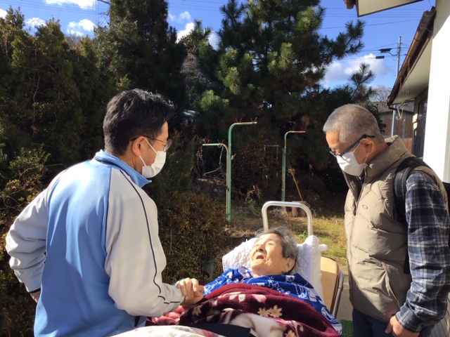12月12日(金)、久しぶりにご自宅へ行ってみたい、という利用者さまの思いを伺い、当日は、複数の専門職種が同行し、安全面・感染面に十分に配慮し、ご家族のご協力の元、ご自宅への帰宅を無事に実施させる事ができた。