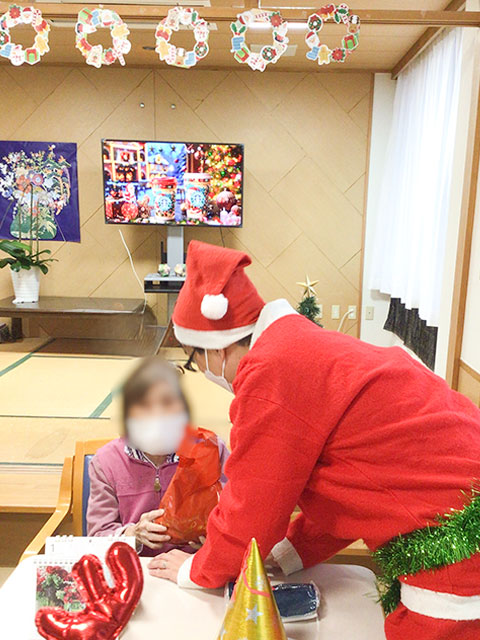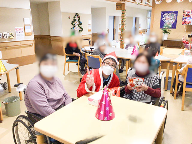 12月17日(水)、施設全体行事としてキャンドルサービスを実施した。利用者さまにケーキをお召し上がりいただき、各フロアそれぞれの階において催し物を実施し、職員から皆さまへささやかなプレゼントを届けさせていただいた。 利用者の皆さまにお楽しみいただきながら、今年も和やかにキャンドルサービスを開催する事ができた。来年も利用者の皆さまと共に、心あたたまる季節行事をたくさん開催していきたい。