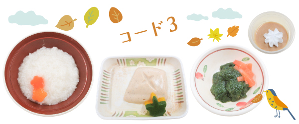 患者さまに「塩キャラメルプリンが甘くておいしい!」と好評だったデザートは、常食からコード2まで同じものを統一して提供しています。