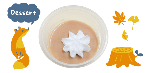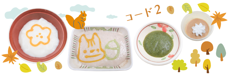 コード2の主菜は、リスとどんぐりの絵を描いて、秋を感じられるようにしました。