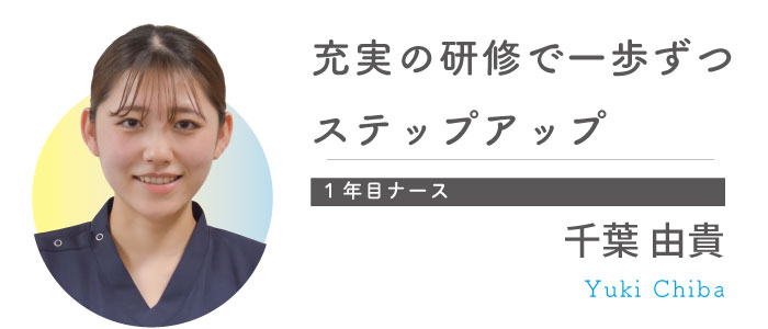 入職後、合同研修と約3週間の病棟ローテーション研修があります。合同研修では社会人としての基本的なマナーや接遇、看護に必要な基本知識・技術を学び、看護師としての自覚や責任感を持つことができました。ほっとする時間という交流の場も設けられ、レクリエーションなどを通じて同期との仲を深めることができます。また、病棟ローテーション研修では、各病棟の特性や雰囲気を知ることができ、配属希望を出すことができました。入職してからは段階を踏んでから現場へと移行できる教育体制が整っているので、新人同士の仲間意識が育まれ、不安を和らげながら「これからここで頑張っていこう」という意欲を持って仕事ができています。