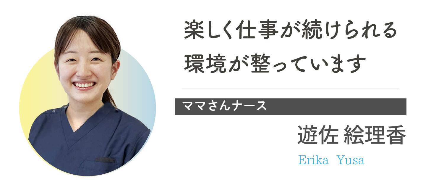 9~16時の育児時短勤務と夜勤免除制度を利用しています。時間内で終了するよう状態変化の少ない患者さんを受け持つよう調整してもらっています。管理者だけでなく病棟メンバーの一人ひとりが業務フォローをしてくれるので、トラブルなく出産を迎えられました。子供の体調不良で急な早退などありますが、快く引き受けていただけて助かっています。